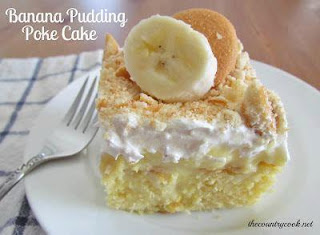 Pour pudding over cake. Taking care to get it into the holes as much as possible.